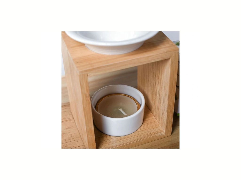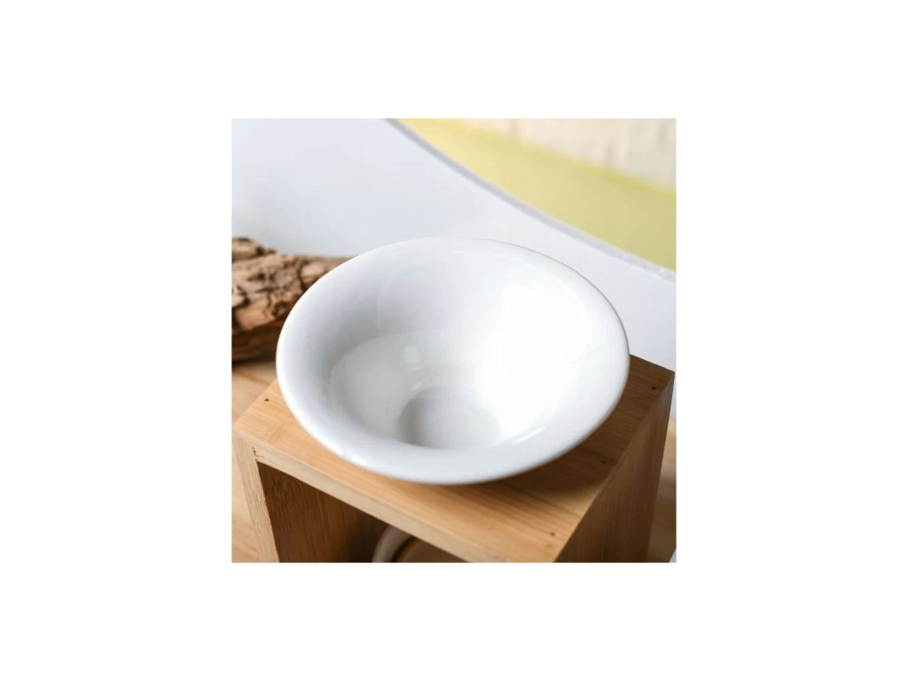 Aroma lampa Arina je elegantní spojení lakované keramiky a bambusového dřeva. Dřevěný stojan s keramickou nádobkou slouží k zahřívání esenciálních olejů, domácích vůní nebo vonných vosků. Po vložení čajové svíčky do spodního keramického držáku se jemné teplo postará o rozptýlení vůně do prostoru a navodí atmosféru klidu a pohody.