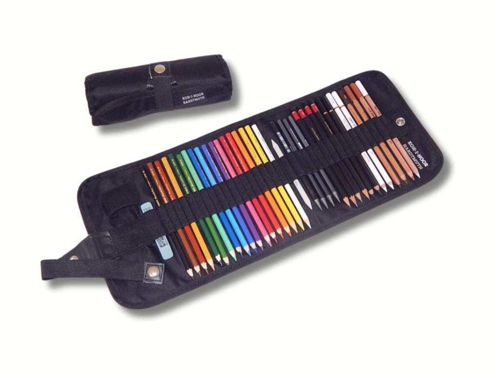 Tato výtvarná sada v elegantním rolovacím pouzdře je skvělým parťákem pro klidné chvíle s pastelkami, uhlem nebo tužkou. Ať už si kreslíte pro radost, pro sebe nebo při tvůrčích aktivitách s druhými, vždy budete mít vše přehledně po ruce.