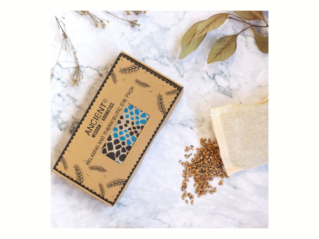 Tento designový oční polštářek přináší jemný tlak a příjemnou vůni levandule, které napomáhají uvolnění. Směs pšeničných semínek a esenciálního oleje z levandule zajišťuje přirozenou termoterapii – možno použít teplý i chladný dle potřeby.
