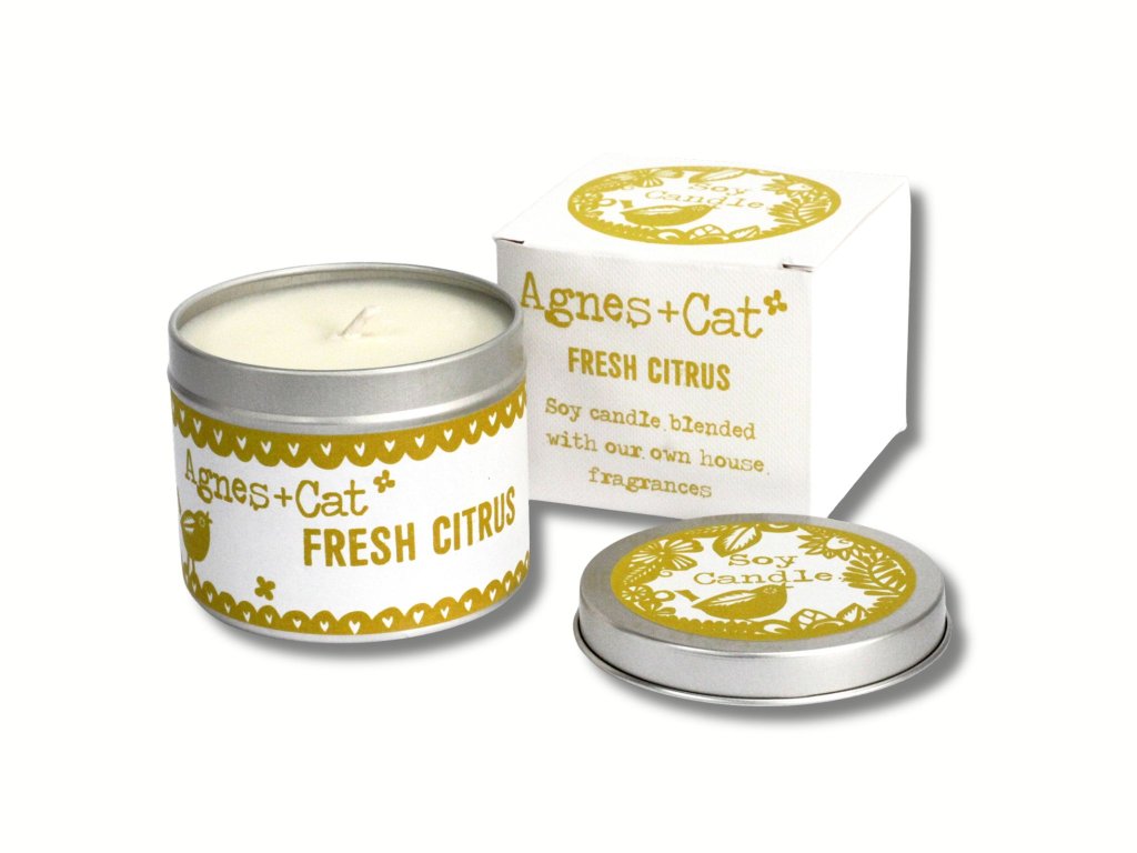 Sójová svíčka v plechovce – Citrus (200 g) svíčka | citrusový paprsek
